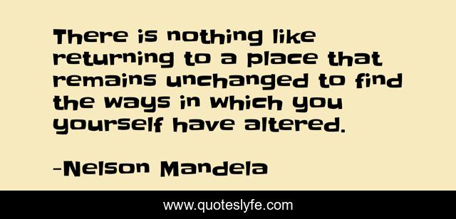 This page presents the quote "There is nothing like returning to a place that remains unchanged to find the ways in which you yourself have altered.". Author of this quote is Nelson Mandela. This quote is about self-discovery, personal-growth,.