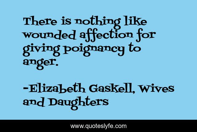 This page presents the quote "There is nothing like wounded affection for giving poignancy to anger.". Author of this quote is Elizabeth Gaskell, Wives and Daughters. This quote is about love, betrayal, parent-and-child, anger, affection, father-and-son,.