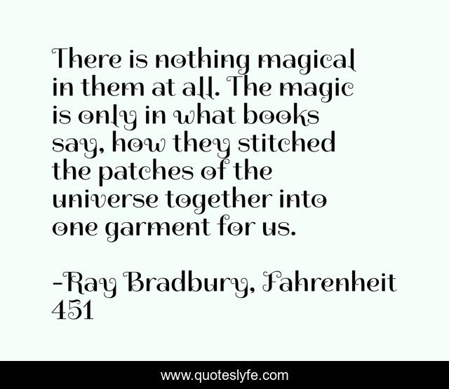 "Ray Bradbury, Fahrenheit 451 Quotes." Quoteslyfe.com, 2025. Fri. 05 Dec. 2025. <https://www.quoteslyfe.com/quote/There-is-nothing-magical-in-them-at-43470>.