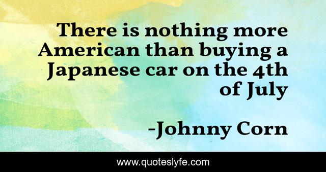 This page presents the quote "There is nothing more American than buying a Japanese car on the 4th of July". Author of this quote is Johnny Corn. This quote is about funny, usa, satire, humourous, independence-day, johnny-corn, comedy,.