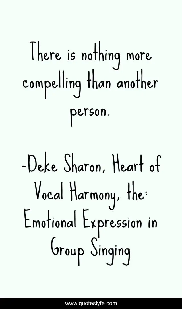 "Deke Sharon, Heart of Vocal Harmony, the: Emotional Expression in Group Singing Quotes." Quoteslyfe.com, 2025. Fri. 05 Dec. 2025. <https://www.quoteslyfe.com/quote/There-is-nothing-more-compelling-than-another-51549>.