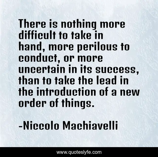 There is nothing more difficult to take in hand, more perilous to conduct, or more uncertain in its success, than to take the lead in the introduction of a new order of things.
