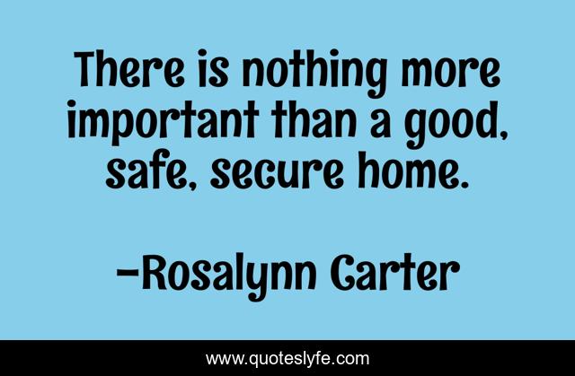 This page presents the quote "There is nothing more important than a good, safe, secure home.". Author of this quote is Rosalynn Carter. This quote is about nothing, good, important,.