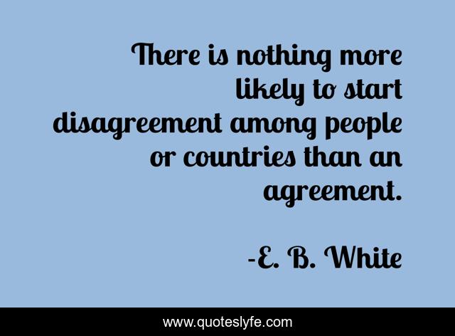 This page presents the quote "There is nothing more likely to start disagreement among people or countries than an agreement.". Author of this quote is E. B. White. .