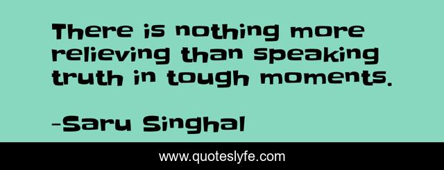 This page presents the quote "There is nothing more relieving than speaking truth in tough moments.". Author of this quote is Saru Singhal. This quote is about quotes-to-live-by, life, truth,.