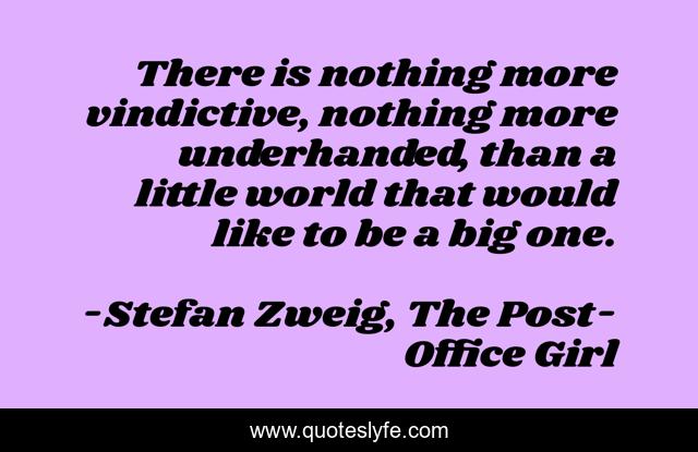 This page presents the quote "There is nothing more vindictive, nothing more underhanded, than a little world that would like to be a big one.". Author of this quote is Stefan Zweig, The Post-Office Girl. This quote is about world, life, vindictive, ambition,.