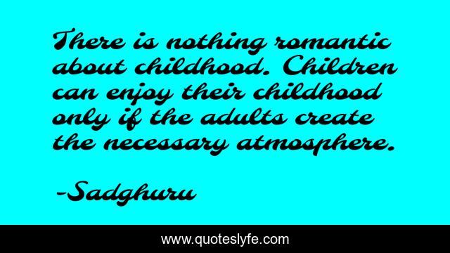 This page presents the quote "There is nothing romantic about childhood. Children can enjoy their childhood only if the adults create the necessary atmosphere.". Author of this quote is Sadghuru. .