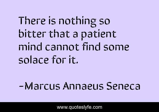 This page presents the quote "There is nothing so bitter that a patient mind cannot find some solace for it.". Author of this quote is Marcus Annaeus Seneca. This quote is about days, difficult,.