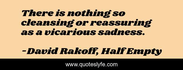 This page presents the quote "There is nothing so cleansing or reassuring as a vicarious sadness.". Author of this quote is David Rakoff, Half Empty. .