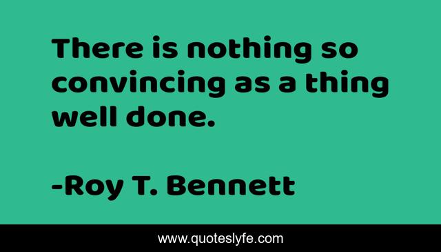 This page presents the quote "There is nothing so convincing as a thing well done.". Author of this quote is Roy T. Bennett. This quote is about living, inspiring, inspire, inspiration, positive, positive-affirmation, motivational, life, confidence,.