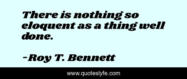 This page presents the quote "There is nothing so eloquent as a thing well done.". Author of this quote is Roy T. Bennett. This quote is about living, inspiring, inspire, inspiration, positive, positive-affirmation, motivational, life, confidence,.