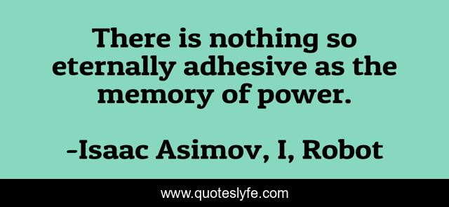 This page presents the quote "There is nothing so eternally adhesive as the memory of power.". Author of this quote is Isaac Asimov, I, Robot. .