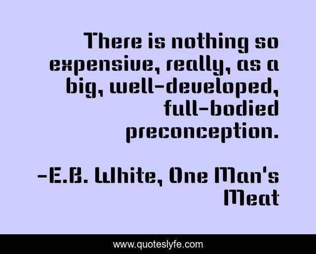 This page presents the quote "There is nothing so expensive, really, as a big, well-developed, full-bodied preconception.". Author of this quote is E.B. White, One Man's Meat. This quote is about living, life, assumptions, preconceptions,.