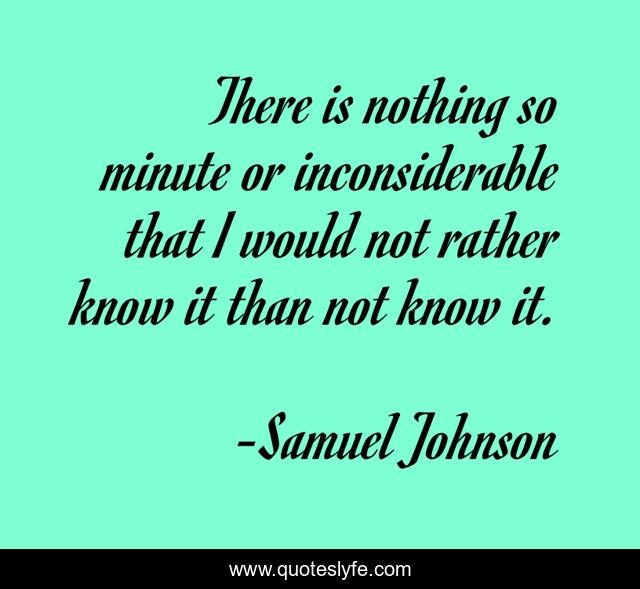 This page presents the quote "There is nothing so minute or inconsiderable that I would not rather know it than not know it.". Author of this quote is Samuel Johnson. .
