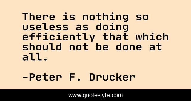 This page presents the quote "There is nothing so useless as doing efficiently that which should not be done at all.". Author of this quote is Peter F. Drucker. .