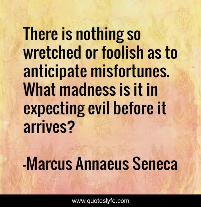 There is nothing so wretched or foolish as to anticipate misfortunes. What madness is it in expecting evil before it arrives?