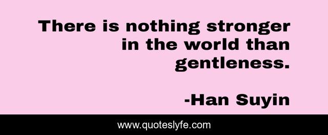 This page presents the quote "There is nothing stronger in the world than gentleness.". Author of this quote is Han Suyin. This quote is about nothing, world, stronger,.