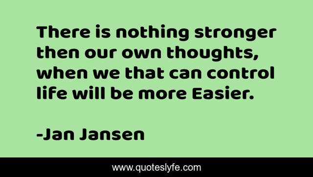 This page presents the quote "There is nothing stronger then our own thoughts, when we that can control life will be more Easier.". Author of this quote is Jan Jansen. .