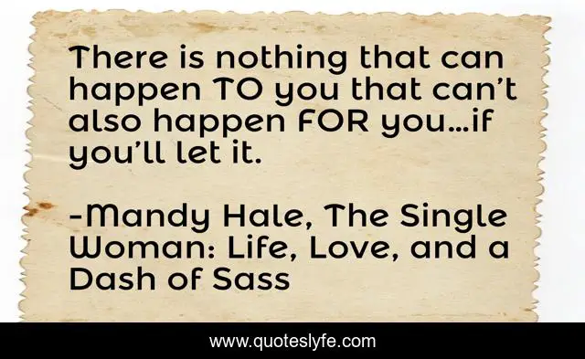 "Mandy Hale, The Single Woman: Life, Love, and a Dash of Sass Quotes." Quoteslyfe.com, 2025. Fri. 05 Dec. 2025. <https://www.quoteslyfe.com/quote/There-is-nothing-that-can-happen-TO-95523>.