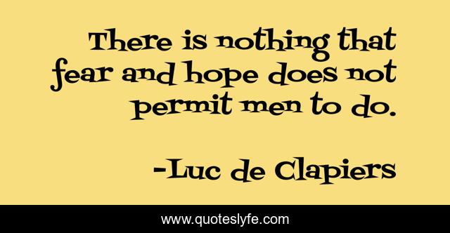This page presents the quote "There is nothing that fear and hope does not permit men to do.". Author of this quote is Luc de Clapiers. This quote is about nothing, men, hope,.