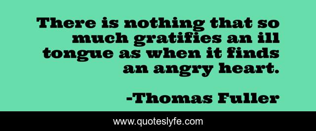 This page presents the quote "There is nothing that so much gratifies an ill tongue as when it finds an angry heart.". Author of this quote is Thomas Fuller. This quote is about heart, angry, tongue,.