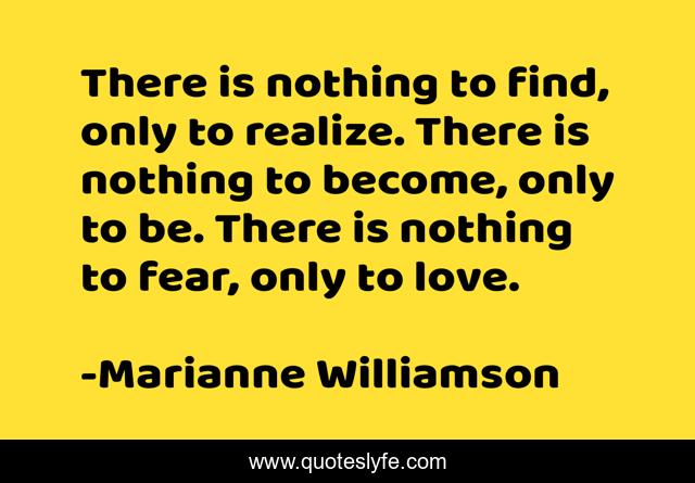 This page presents the quote "There is nothing to find, only to realize. There is nothing to become, only to be. There is nothing to fear, only to love.". Author of this quote is Marianne Williamson. This quote is about being, finding, fear, love, affection,.