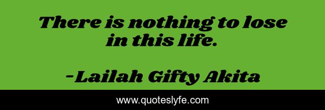 This page presents the quote "There is nothing to lose in this life.". Author of this quote is Lailah Gifty Akita. This quote is about life, death, lailah-gifty-akita-affirmations, wise-words,.