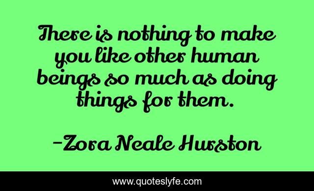 This page presents the quote "There is nothing to make you like other human beings so much as doing things for them.". Author of this quote is Zora Neale Hurston. This quote is about helping, people,.
