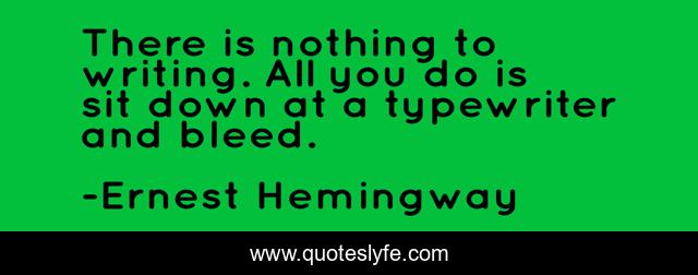 This page presents the quote "There is nothing to writing. All you do is sit down at a typewriter and bleed.". Author of this quote is Ernest Hemingway. This quote is about good, writing,.