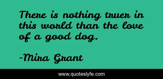 This page presents the quote "There is nothing truer in this world than the love of a good dog.". Author of this quote is Mira Grant. This quote is about love, dog, affection, dogs,.