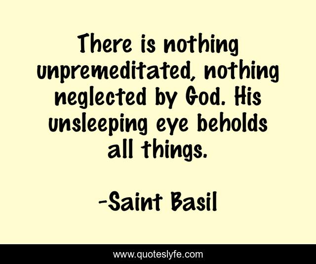 This page presents the quote "There is nothing unpremeditated, nothing neglected by God. His unsleeping eye beholds all things.". Author of this quote is Saint Basil. This quote is about nothing, things, eye,.