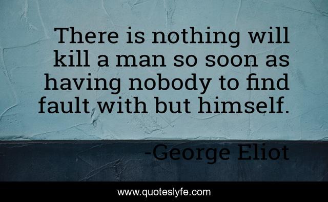 This page presents the quote "There is nothing will kill a man so soon as having nobody to find fault with but himself.". Author of this quote is George Eliot. This quote is about self, knowledge,.