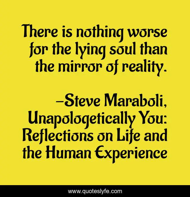 This page presents the quote "There is nothing worse for the lying soul than the mirror of reality.". Author of this quote is Steve Maraboli, Unapologetically You: Reflections on Life and the Human Experience. This quote is about life, success, soul, reality, lying, mirror, happiness,.