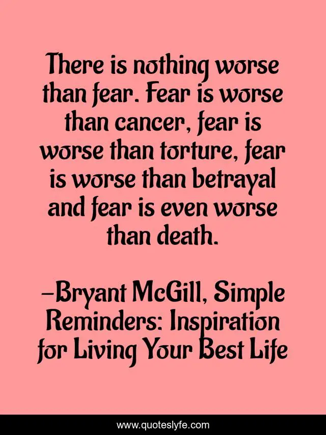 "Bryant McGill, Simple Reminders: Inspiration for Living Your Best Life Quotes." Quoteslyfe.com, 2025. Sat. 06 Dec. 2025. <https://www.quoteslyfe.com/quote/There-is-nothing-worse-than-fear-Fear-225234>.