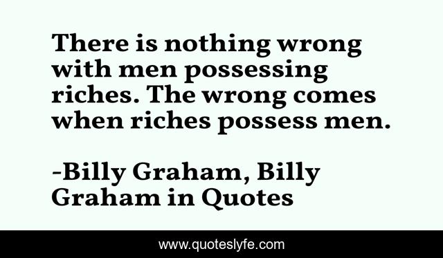 This page presents the quote "There is nothing wrong with men possessing riches. The wrong comes when riches possess men.". Author of this quote is Billy Graham, Billy Graham in Quotes. This quote is about money, billy-graham,.