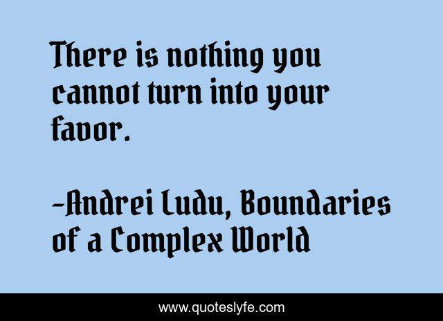 This page presents the quote "There is nothing you cannot turn into your favor.". Author of this quote is Andrei Ludu, Boundaries of a Complex World. This quote is about life, help, success, encouragement, failure, optimism, regret,.