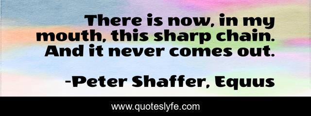 This page presents the quote "There is now, in my mouth, this sharp chain. And it never comes out.". Author of this quote is Peter Shaffer, Equus. .