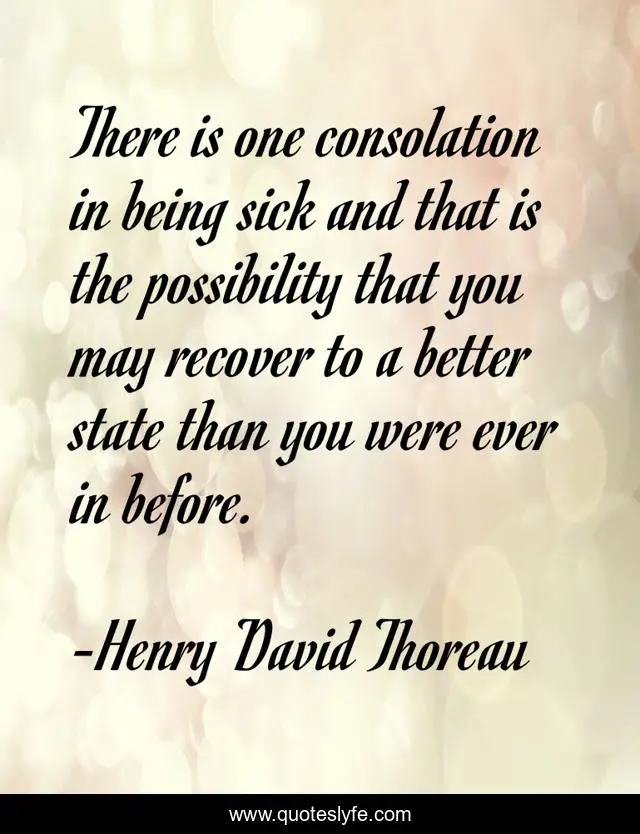 This page presents the quote "There is one consolation in being sick and that is the possibility that you may recover to a better state than you were ever in before.". Author of this quote is Henry David Thoreau. This quote is about better, sick,.