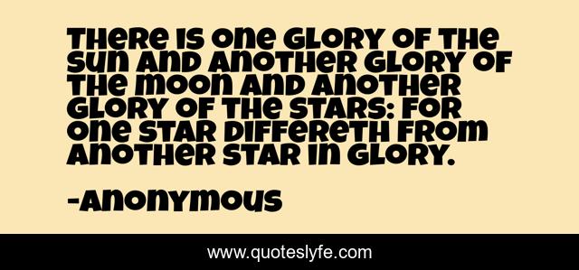 This page presents the quote "There is one glory of the sun and another glory of the moon and another glory of the stars: for one star differeth from another star in glory.". Author of this quote is Anonymous. .