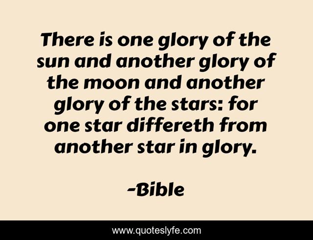 This page presents the quote "There is one glory of the sun and another glory of the moon and another glory of the stars: for one star differeth from another star in glory.". Author of this quote is Bible. .