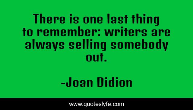 This page presents the quote "There is one last thing to remember: writers are always selling somebody out.". Author of this quote is Joan Didion. This quote is about writers, writing,.