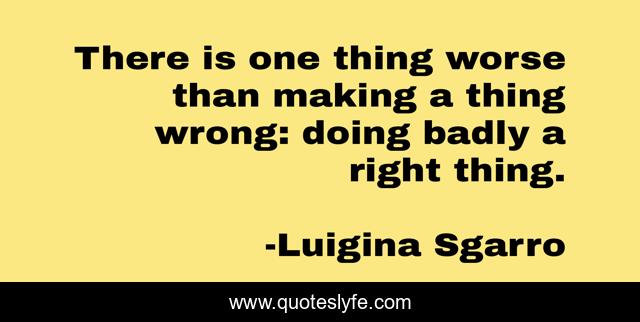 This page presents the quote "There is one thing worse than making a thing wrong: doing badly a right thing.". Author of this quote is Luigina Sgarro. .