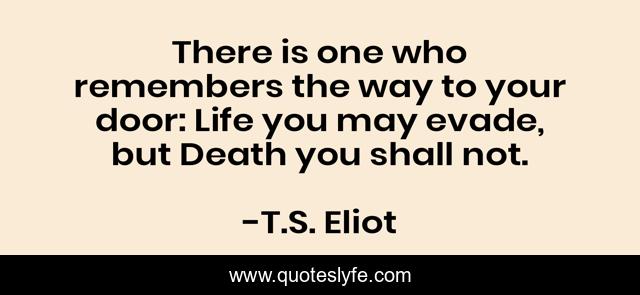 This page presents the quote "There is one who remembers the way to your door: Life you may evade, but Death you shall not.". Author of this quote is T.S. Eliot. This quote is about life, death,.