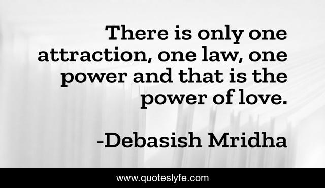 This page presents the quote "There is only one attraction, one law, one power and that is the power of love.". Author of this quote is Debasish Mridha. This quote is about love, power, attraction, philosophy, debasish-mridha, power-of-love, quotes, inspirational, enthusiasm,.