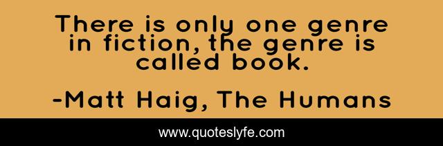 This page presents the quote "There is only one genre in fiction, the genre is called book.". Author of this quote is Matt Haig, The Humans. This quote is about genre, books, reading, literature, fiction,.