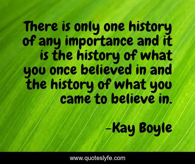 This page presents the quote "There is only one history of any importance and it is the history of what you once believed in and the history of what you came to believe in.". Author of this quote is Kay Boyle. .