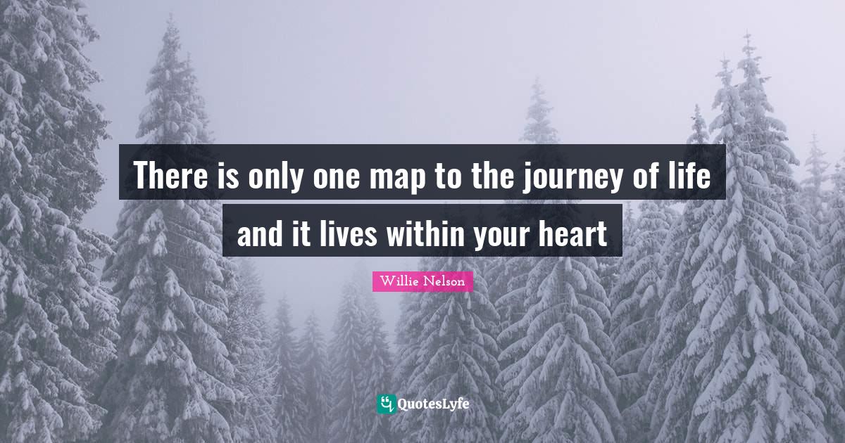 This page presents the quote "There is only one map to the journey of life and it lives within your heart". Author of this quote is Willie Nelson. This quote is about life, journey, maps, heart,.