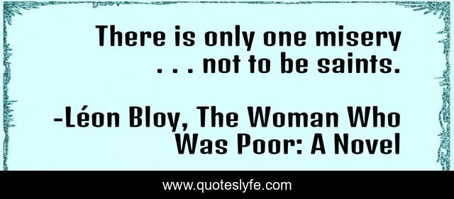 This page presents the quote "There is only one misery . . . not to be saints.". Author of this quote is Léon Bloy, The Woman Who Was Poor: A Novel. This quote is about life, catholicism, saints, catholic-author, fiction, religion, leon-bloy, christianity,.