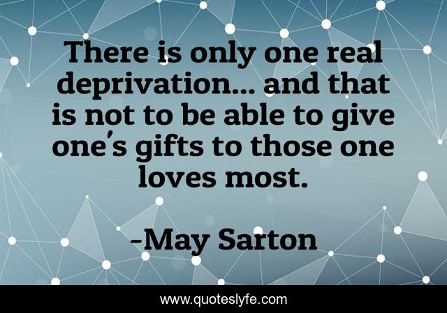 This page presents the quote "There is only one real deprivation... and that is not to be able to give one's gifts to those one loves most.". Author of this quote is May Sarton. This quote is about real, gifts, give,.