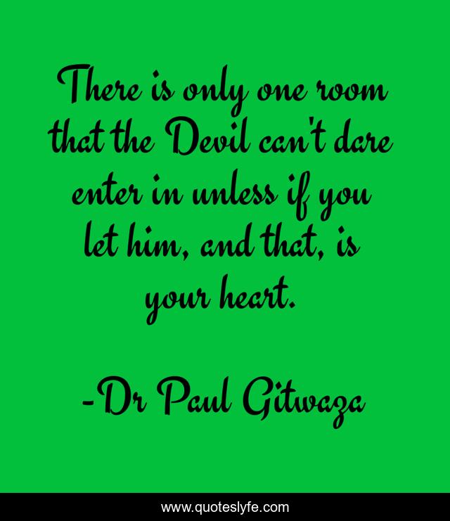 This page presents the quote "There is only one room that the Devil can't dare enter in unless if you let him, and that, is your heart.". Author of this quote is Dr Paul Gitwaza. This quote is about heart, devil, christian, relationship, people, god, church, unless,.
